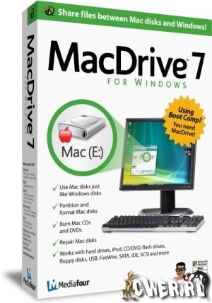 MacDrive - программа, позволяющая пользователям компьютеров открывать, редактировать и сохранять файлы на носители, отформатированные под формат компьютеров Macintosh. Утилита позволяет работать с дискетами, дисками CD-ROM/DVD-ROM, дискетами ZIP-драйвов и другими носителями. При этом, для пользователя работа MacDrive прозрачна: в программах Windows диски, созданные на Mac, видны и работают так же, как и обычные тома NTFS или FAT. MacDrive позволяет разбивать Mac-диски на разделы и форматировать их, также есть возможность записи компакт-дисков CD-ROM/DVD-ROM в формате Macintosh. Кроме этого, имеется возможность проверки и устранения ошибок на Mac-дисках.