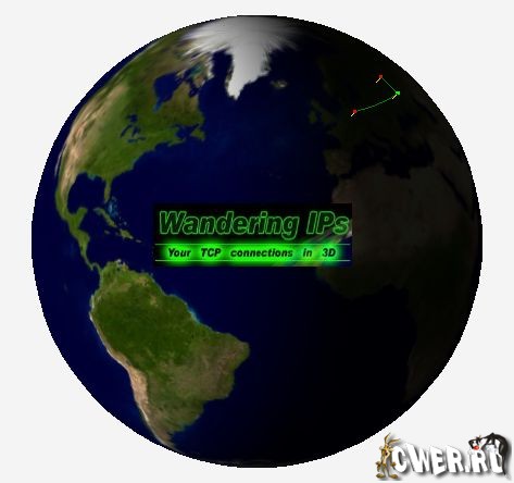 Wandering IPs – это программа обнаружения геолокации по IP. Сразу после запуска данная программа наблюдает за TCP подключениями, созданными с вашего компьютера, определяет удаленные IP адреса и потом пытается определить их геологическую локацию. Результат отображается на карте с иллюминированными часовыми поясами, трехмерным глобусом. Помимо обнаружения конечных точек, данная программа может использоваться для определения маршрута, который был пройден пакетами по IP сети.