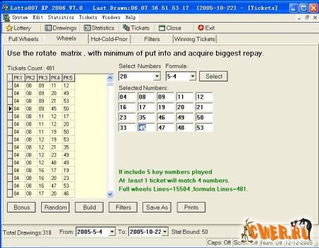 Lotto007 XP - мощный математический инструмент, который поможет Вам при игре в лотерею с помощью анализа предыдущих выигрышей и использования различных вариантов фильтрования (Lotto007 имеет больше чем 22 фильтра, и вы можете установить определенный фильтр "Максимально допустимой погрешности"). Lotto007 подходит для всех игроков - от новичка до профессионального игрока, использует очень сложные и разнообразные инструменты анализа. Программу можно использовать для таких лото-игр как Шар Удачи, Русское Лото, Золотой ключ и другие.