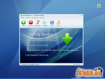 YoutubeGet - очень простой , но в то же время очень удобный набор инструментов для: просмотра, скачивания и конвертации выходного изображения с популярного сайта Youtube.com . Программа имеет свой встроенный браузер , интуитивно понятную качалку и конвертер, который поможет перекодировать полученный файл в нужное разрешение и формат для дальнейшего просмотра его на компьютере, мобильнике или других устройствах.