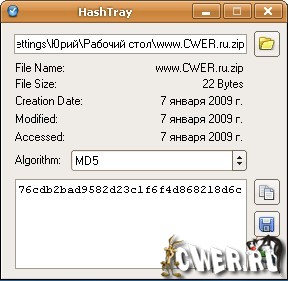 HashTray - простая в использовании небольшая программа, представляющая из себя калькулятор подсчета хэша файлов для сравнения и проверки целостности файлов. С помощью данного инструмента вы сможете с легкостью генерировать различные хэши для одного файла, также программа с легкостью вам поможет сравнивать или находить дуплированные и поврежденные файлы.