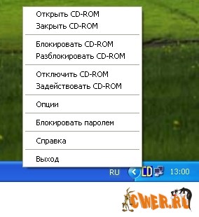 Управление устройствами типа CD-ROM. Полная блокировка (пропадает из проводника), блокировка лотка, управление лотком (выдвигает-задвигает лоток). Определяет количество установленных устройств CD-ROM, их характеристики: тип, производитель, модель...