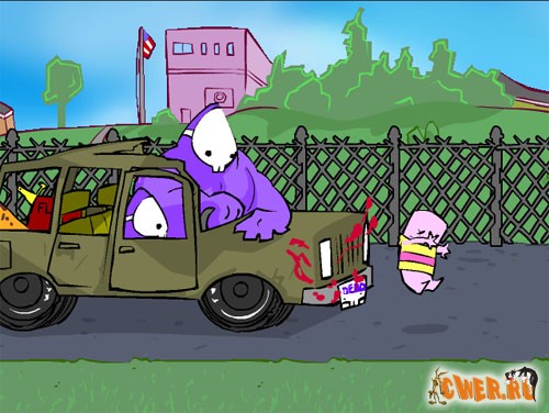 Очень "добрая" флешка! Вы - злобный ребёнок, нещадно избивающий сверстников и крушащий всё на своём пути. Всё это безобразие происходит под весёленькую музычку...