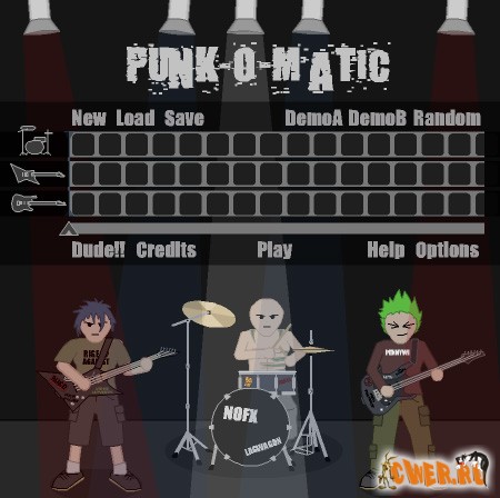 Весёлая флешка! Вы выступаете в роли рок-музыканта, точнее целой рок-группы. В Вашем распоряжении три инструмента: соло-, ритм-гитара и барабанная установка. Путём незамысловатых манипуляций мышью (или клавиатурой), прописываем риффы для каждого инструмента и наслаждаемся своим собственным музыкальным метал-панк-рок шедевром! В игре достаточное количество примеров, поэтому разберётся даже далёкий от музыки человек. Несколько однообразно, но оригинально и весело.