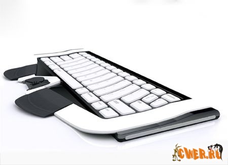 Компьютерная периферия – неисчерпаемый источник фантазии для разработчиков концептов. С первого взгляда Glide смотрится как обычная, достаточно широкая, клавиатура. Однако если присмотреться, то становится ясно, что клавиши, отвечающие за буквы, «срослись», а в нижней части расположилась встроенная мышь со скролловым колесиком и двумя кнопками. Движение мыши обеспечивается за счет оптического сенсора, спрятанного в черной панели под основной клавиатурой.