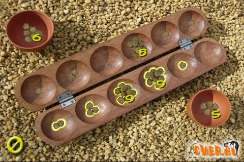 Awele - интересная игра, в которой два противника пытаются захватить как можно больше семян. Игра происходит на доске с 6-ю дырками,игроки по очереди кладут семена в дырки. Понять смысл игры очень легко, но вот добиться мастерства...
