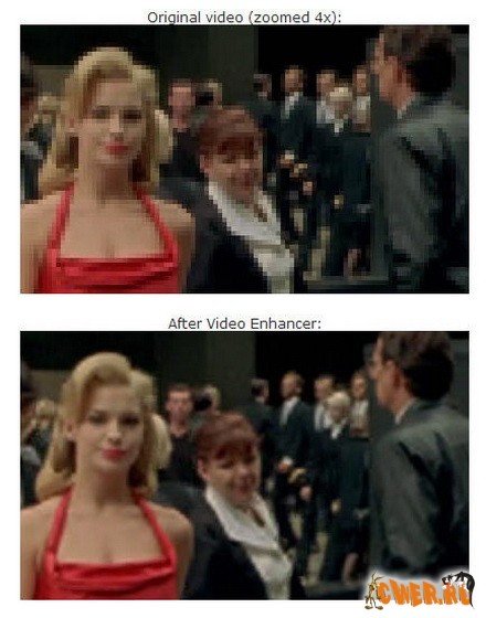 Video Enhancer - утилита преобразующая Ваше видео в любое разрешение с превосходным качеством. Эта программа убирает или сглаживает эфект квадратов в видеофильме с невысоким разрешением. Делает это, используя для своей работы необходимые элементы не из текущего кадра, как другие программы, а из предыдущих кадров.