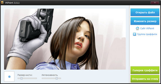 Удобная программа для загрузки изображений как граффити на стену контакта. В VKPaint встроена большая галерея граффити на различные тематики. Программа поддерживает режим рисования поверх изображений, так что вы сможете с легкостью подписать поздравления или подрисовать рожки на фото вашего друга. :)