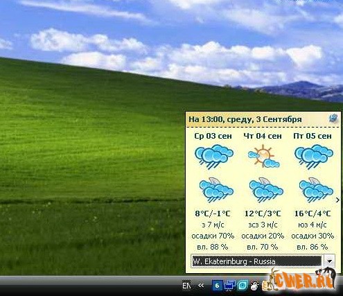 Значок в трее (область уведомлений возле часов) показывает текущую температуру воздуха в выбранном городе.