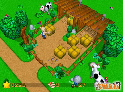 Эта игра — римейк популярной компьютерной головоломки Sokoban. Ее главный герой, фермер Джо, решил навести порядок в своем хозяйстве. В этом ему понадобится ваша помощь. Управляя Джо, осторожно передвигайте ящики, снопы сена и фляги для молока, ведь все они расположены таким образом, что действия необходимо продумывать на несколько ходов вперед.