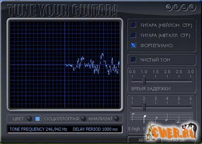 Программа представляет собой простой и удобный тюнер для настройки шестиструнной гитары на стандартные частоты.