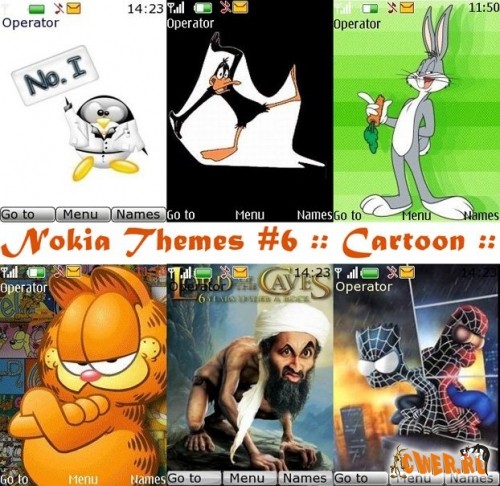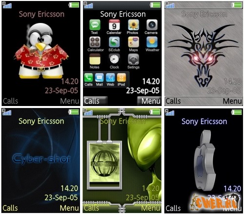 Темы для экранов 240х320: Alien News, Linux, Osx Animated, Cybershot 2, Tribal Ani, Iphone.
