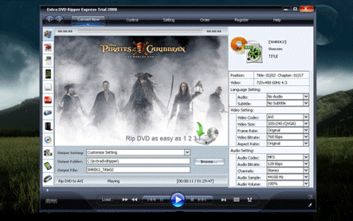 Extra DVD Ripper Express - гибкое и удобное программное обеспечение для преобразования видео. Поддержка конвертирования DVD в AVI, MPEG, iPod(MP4), iPhone, Apple TV, flv(YouTube), Sony PSP, Sony PS3, WMV, Microsoft Zune Player, Pocket PC, Mobile 3GP без потери качества.