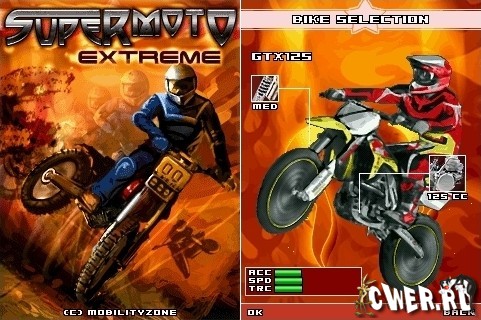 Гонки для телефона, в которых вам предстоит принять участие в чемпионате по экстремальным мото-гонкам. Размеры экранов: 132x176, 176x208, 176x220, 208x208, 240x320.