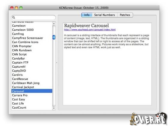 Популярный набор серийников и патчей для софта под Мac OS. База данных обновляется два раза в месяц. Так же содержит описание программ и ссылки на загрузку.