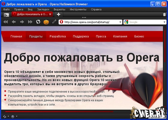 Скачать программу Opera 10.01.1844 Final Halloween Edition (11,6 МБ):