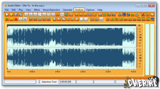 - Применять различные эффекты (Amplify, Compressor, Delay, Equalize, Fade In и Fade Out, Flanger, Invert, Normalize, Phaser, Reverb, Reverse, Silence, Shrink, Stretch, Vibrato и т.д.).