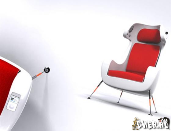 Отличный концепт для тех, кто любит очень комфортно отдыхать, представил дизайнер Martin Emila. Это замечательное кресло радует не только эргономичным дизайном, но и встроенной в подлокотник док-станцией для iPod, а также динамиками, установленными в изголовье, и проектором.