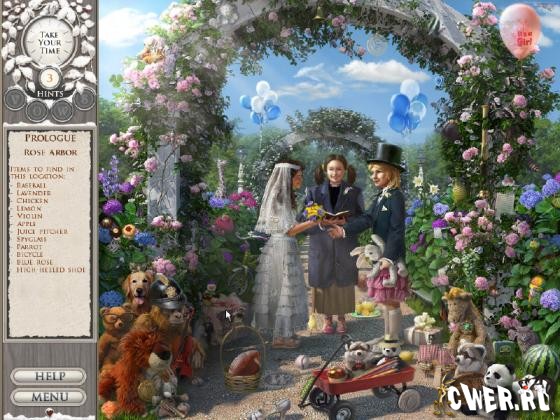 Прохождение бетки рассчитано не на время, а на 3 главы (примерно около часа). Выбираем режим на время или без. Даются 3 подсказки, чтобы получить еще одну, нужно в каждой сцене собирать по 4 буквы (vows). При использовании подсказки предмет выбираем сами при помощи лупы. При частом пустом кликанье одну подсказку отнимают. Периодически дают задания (подобрать торт, составить букет и т.д.). Привычных мини-игр нет. Великолепная графика, что не умаляет сложность поиска. Игру сопровождает прекрасная романтическая музыка.