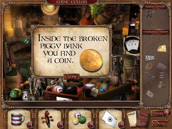 И снова розыск предметов среди груды хлама на экране... Но и тут не обошлось без своих особенностей: вы должны не просто найти все нужные предметы в комнате, а в буквальном смысле собрать их по кусочкам. Более того, после того как вы нашли всё что нужно - каждый из предметов необходимо положить на своё законное место, а некоторые надо использовать на другие объекты в комнате.