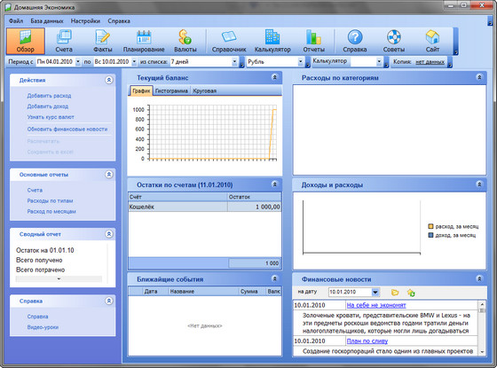 «Домашняя экономика» — это новая программа для управления личными финансами и планирования семейного бюджета. Теперь вы сможете точно знать, на что уходят ваши деньги и быстрее достигать значимых финансовых целей. Встроенный органайзер позволит планировать расходы и доходы, а система отчётов даст наглядное представление о движении денег. Программа включает уникальную функцию прогнозирования инфляции, благодаря которой становится возможным расчёт реальной доходности банковских вкладов и оценка эффективности кредитов. Вы сможете сравнивать различные виды вкладов или кредитов и выбирать наиболее выгодные. Программа позволяет также загружать курсы валют и просматривать доходы и расходы в любой выбранной валюте. Ориентироваться в экономической ситуации вам поможет ежедневная сводка самых важных финансовых новостей, а также большое количество практических рекомендаций от экспертов по управлению личными финансами. Интерфейс программы только на русском языке.