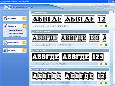 Скачать программу "Русские шрифты. Декоративные" (93,3 МБ):