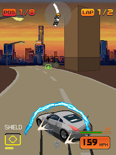 Настоящее побоище, с фотореалистичными машинами, полноценной моделью повреждений, боевыми и защитными приемами. Собирая бонусы, разбросанные по трассе, вы можете, помимо прочего, резко увеличивать скорость и поджаривать соперников энергетическими залпами. В качестве мест действия избраны реальные города: Лос-Анджелес, Сан-Франциско, Барселона и Хэкни. Размеры экранов: 128x128, 128x160, 176x208, 176x220, 240x320, 320x240, 352x416, 360x640.