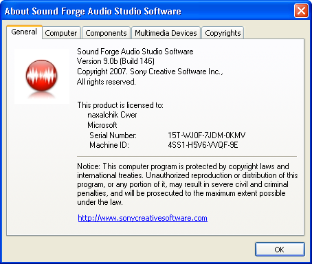Скачать программу Sony Sound Forge Audio Studio 9.0b build 146 (44,63 МБ):