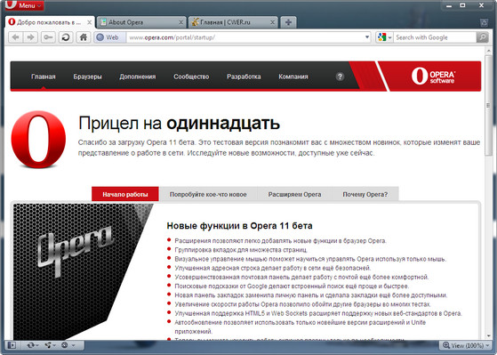 Новые функции в Opera 11 бета: