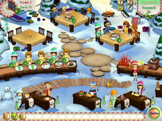 Стройте бизнес собственными руками. В вашем распоряжении целое кафе и бригада гениальных поваров. Балуйте своих клиентов, расширяйте меню, дополняя его различными кексами, яблочным сидром и горячим шоколадом, и делайте скидки на традиционный рождественский ужин - картофельное пюре с ароматной индейкой.