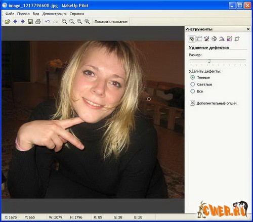 MakeUp Pilot - программа для выполнения макияжа непосредственно на Ваших фотографиях. Она позволяет легко и быстро удалять мелкие дефекты на коже. С ее помощью вы сможете сделать Ваши снимки еще лучше!