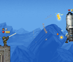 Но здесь технология вышла на новый уровень. Во-первых, появились материалы. Каждый объект имеет различную плотность и состоит из множества запчастей. В процессе игры его можно «разобрать» с помощью неплохого арсенала, предлагаемого во встроенном магазине. Во-вторых значительно улучшена динамика. Десантный бот очень реалистично врезается в землю или сжигает все на своем пути реактивной струей. Большая пушка разносит на пикселы солдат противника так, что только каски отлетают.