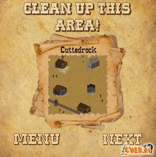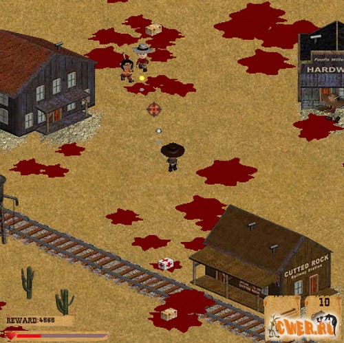 Флеш-вестерн. Стрельба, стрельба и ещё раз стрельба... Выбираем одного из трёх персонажей и вперёд, навстречу толпе злых ковбоев и неугомонных индейцев! В процессе подбираем ящики (в них патроны, оружие, динамит и др. сопутствующие изделия) и аптечки (в них - здоровье, разумеется :-)). Управление клавиатурой или мышью. Очень динамичная флешка - зазевался и ты труп!