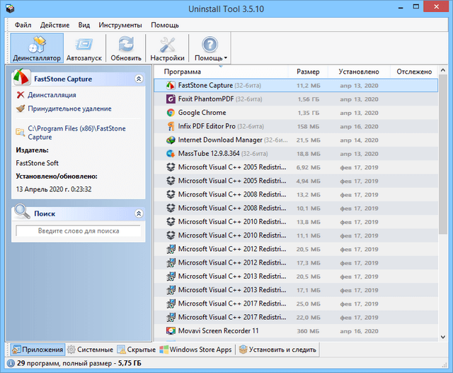 - Просмотр детальной информации о любой программе, установленной на вашем компьютере