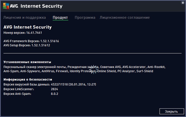 Скачать программу AVG Internet Security 2016 16.41.7441 для x64 (240,9 МБ):