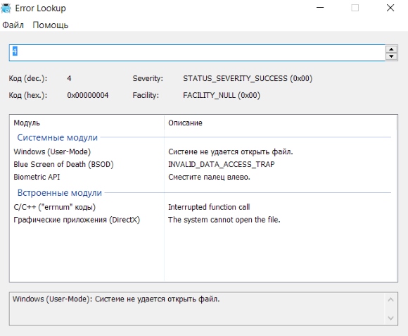 Error Lookup - небольшая утилита для получения информации о системных ошибках Windows, DirectX, NTSTATUS, WinInet, STOP. Вводите код ошибки - получаете информацию про неё.