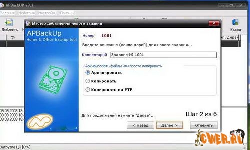 Местом сохранения архива может служить как локальный диск, CD-R, так и другой компьютер в локальной сети, а так же FTP сервер, причем все эти пункты назначения вы можете использовать одновременно, дублируя архив.