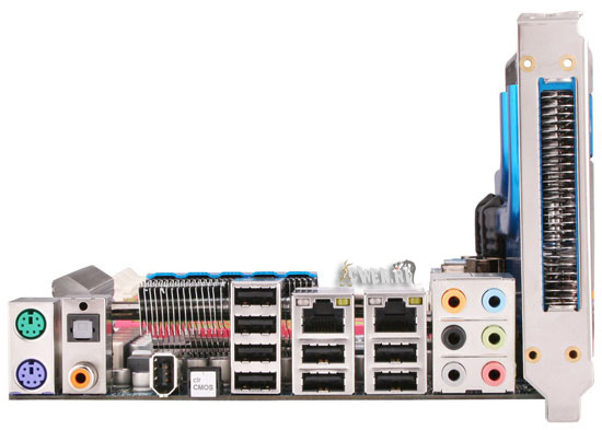 Как красноречиво свидетельствует надпись на радиаторе, отвечающем за понижение температуры южного моста ICH10R, данная платформа создана по новейшей фирменной технологии Ultra Durable 3, главной особенностью которой является принципиально новый подход к изготовлению печатных плат, при котором две унции меди используются для уровня электропитания и столько же для уровня заземления.