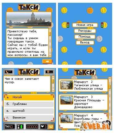 Цель игры – отвечать на вопросы и получать деньги за правильные ответы. В начале можно выбрать маршрут. Помни, у каждого маршрута свои вопросы. Чем длинней маршрут – тем больше вопросов, но тем они и проще и "дешевле". На коротком маршруте вопросов меньше, но они соответственно сложнее и "дороже". Включается счетчик. Машина трогается… Поехали!