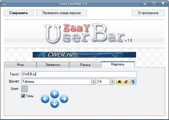 Easy UserBar - очень простая программа для создания Userbar'ов, которая поможет легко и быстро создать оригинальный Userbar. Все что нужно сделать это определиться со стилем фона, эффектом объема, рамкой и надписью. Это одна из немногих программ для создания юзербаров с поддержкой русского языка и кириллицы.