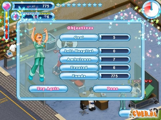 Встречайте новую захватывающую и причудливую тайм-менеджмент игру с красивой графикой и простым понятным геймплеем. Вам предстоит работать в успешной больнице, диагностируя и леча пациентов. Игра имеет два различных режима игры, семь разнообразных местоположений и сотни уникальных типов пациентов, страдающих от различных болезней. Наслаждайтесь часами юмора и получайте удовольствие от новой игры.