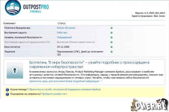 Скачать программу Outpost Firewall Pro 2009 Build 6.5.2509.366.0663 Final (23 МБ):
