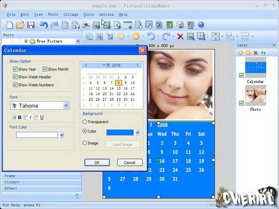 Picture Collage Maker - простая в использовании программа для создания коллажей из ваших фотографий. Простой интерфейс программы и множество шаблонов позволят легко создавать разнообразные фотоколлажи (календари, поздравительные открытки, пригласительные билеты, постеры и т.д.) даже неопытным пользователям. Создание коллажей - это расслабляющее время-провождение, помогающее превращать собранные фотографии в драгоценные воспоминания. Это самый легкий способ создания коллажей с применением вращений, изменения размеров, положений, обрамлений, маскировки, слияния и применением различных эффектов для каждой картинки по-отдельности. Результат может быть сохранен в форматах JPG, BMP, TIFF, GIF, WMF, TGA, PNG или установлен в качестве фонового рисунка для рабочего стола.