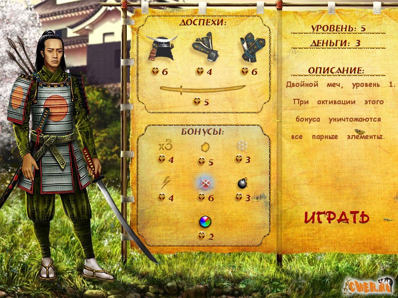 Классический Match 3 в сочетании с умиротворяющей музыкой, живописной графикой и удивительно приятным и гармоничным, как все восточное, геймплеем заставят вас провести не одну приятную минуту за игрой. Цель игры теперь заключается не просто в составлении одинаковых по форме и цвету элементов. Теперь это лишь инструмент, в руках Мастера. А вы, в свою очередь, теперь не просто игрок. Вы - наставник наследника умершего императора и на вас лежит великая миссия. Вы должны не позволить внутренним распрям и конфликтам посягнуть на традиции, сложившиеся веками, не допустить окончательного распада и краха страны Восходящего Солнца, и сделать все, что от вас зависит, ради сохранения ее целостности и величия. Тридцать пять игровых уровней дополнены десятью уровнями-бонусами, традиционные два режима игры аркада и паззл являются неотъемлемой частью основной сюжетной линии, творцом которой будете вы. Вам в помощь появилось множество бонусных предметов, которые можно купить на заработанные в процессе игры деньги.