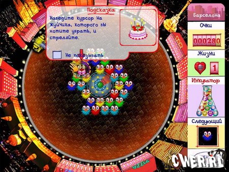 Орудие перемещается вдоль периметра площади, а посредине расположен огромный звездолет из которого и выкатываются иноземные воины. Вы должны срелять жуйчиками и собирать их по одинаковой цветовой гамме в группу не менеe трёх. Обращайте внимание на то, что постоянно десантируются новые отряды жуйчиков.