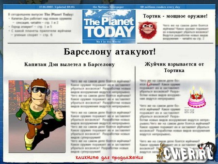 Они решили все сделать молниеносно и в их стратегических планах первоочередной задачей является захват самых крупных городов. Вам вместе с Капитаном Деном Корнфлейком предстоит нешуточноя борьба с инопланетными существами. Спасите наши прекрасные столицы от злобных монстров. Вам дается в управление пушечное орудие, ядрами которой являются жуйчики самых невероятных цветов.