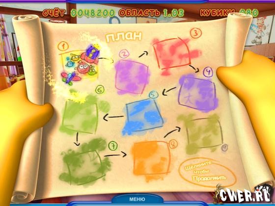 Но не все так просто: из кубиков сложены узоры. После каждого хода они сдвигаются вниз. И если на уровне не окажется ни одной пары кубиков, то уборку придется начинать заново. Чтобы этого не произошло, планируйте свои действия на несколько ходов вперед и используйте бонусы.