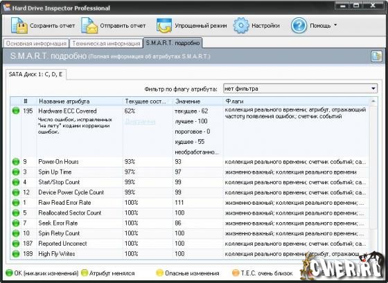 Современные жесткие диски поддерживают технологию S.M.A.R.T. (Self-Monitoring, Analysis, and Reporting Technology), которая была специально разработана для обнаружения грядущих выходов дисков из строя. Используя эту технологию, Hard Drive Inspector может осуществлять наблюдение за текущим состоянием различных жизненно-важных параметров, описывающих надежность и производительность диска. Hard Drive Inspector анализирует эти данные и предупреждает пользователя в том случае, когда параметры указывают на критическое падение надежности винчестера. Это во многих случаях позволяет предотвратить потерю информации.