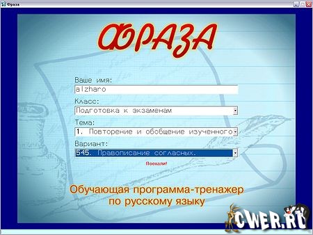"Фраза" - это своеобразный электронный репетитор, разработанный преподавателями русского языка, методистами и психологами. Она содержит около 4 000 заданий по всему курсу русского языка средней школы, в том числе около 1 000 заданий для подготовки к выпускным и вступительным экзаменам.