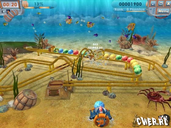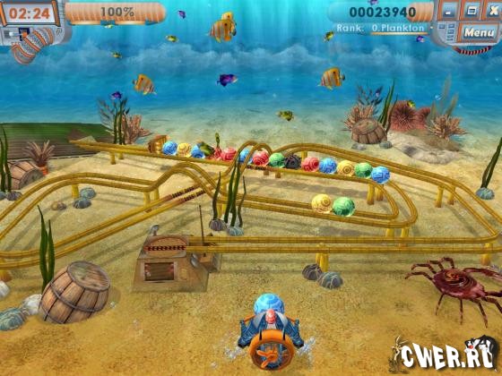 Ваша задача заключается в уничтожении разноцветных шариков в цепочке пока они не дошли до конца. Управляя подводным батискафом нужно группировать цепочки по 3 одинаковых по цвету шарика, тем самым уничтожая их.